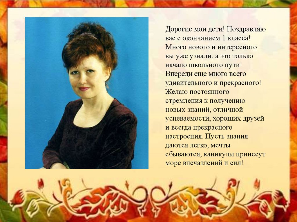 Дорогие мои дети! Поздравляювас с окончанием 1 класса!