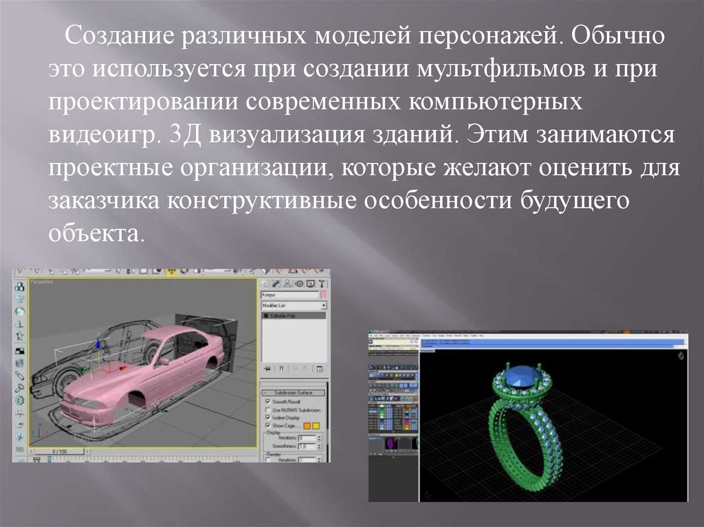 Создание различных моделей персонажей. Обычноэто используется при создании мультфильмов и при