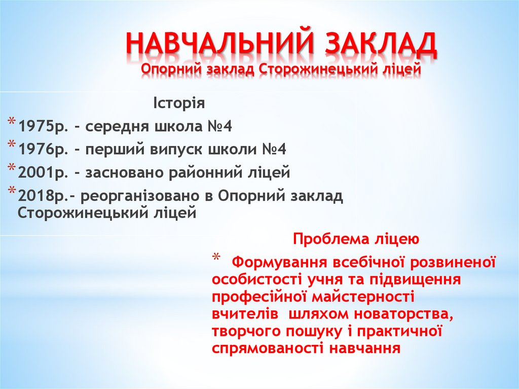 НАВЧАЛЬНИЙ ЗАКЛАДОпорний заклад Сторожинецький ліцей