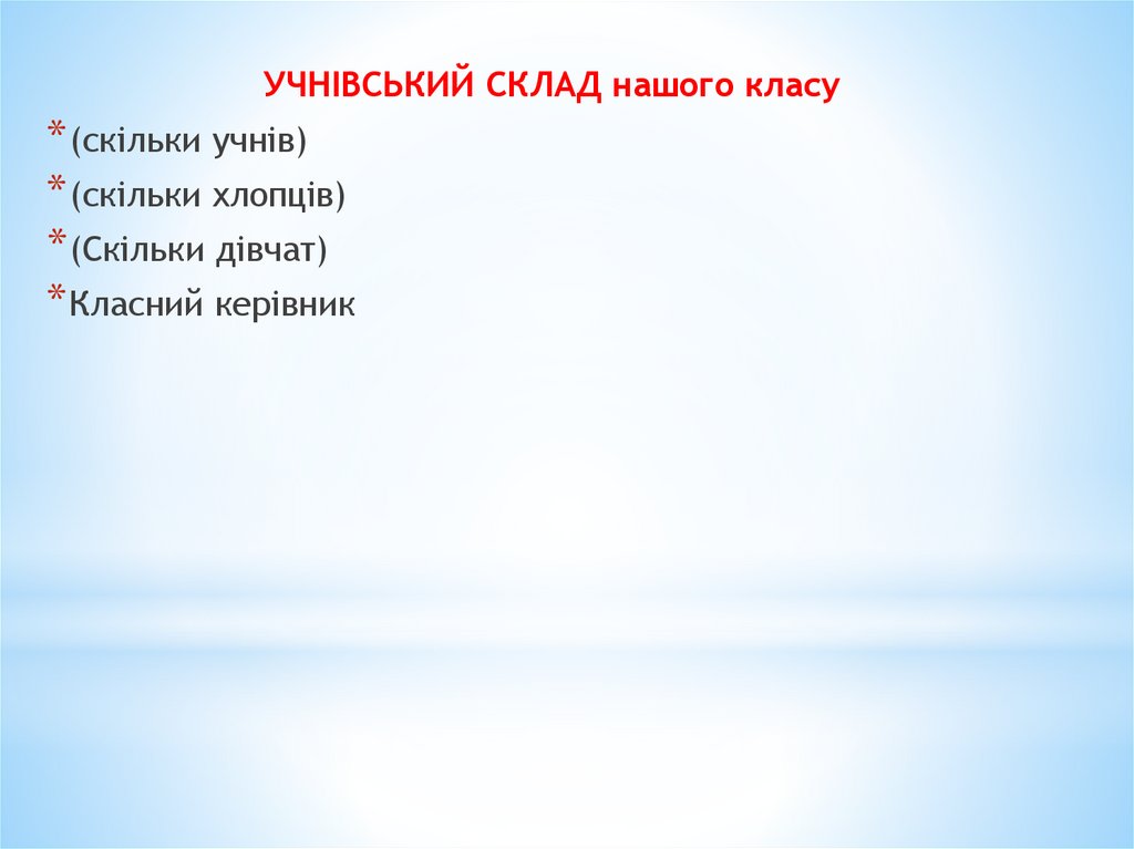 УЧНІВСЬКИЙ СКЛАД нашого класу* (скільки учнів)