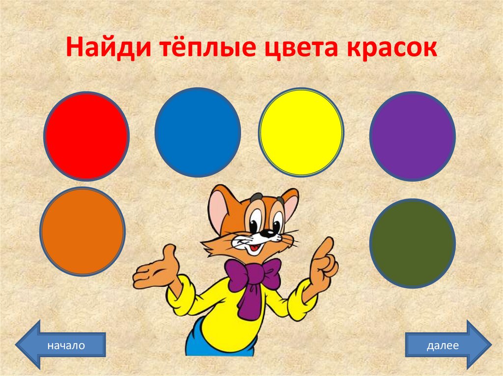 Найди тёплые цвета красокначало