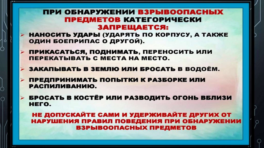 Памятка о правилах поведения в чрезвычайных ситуациях и при обнаружении ВОП