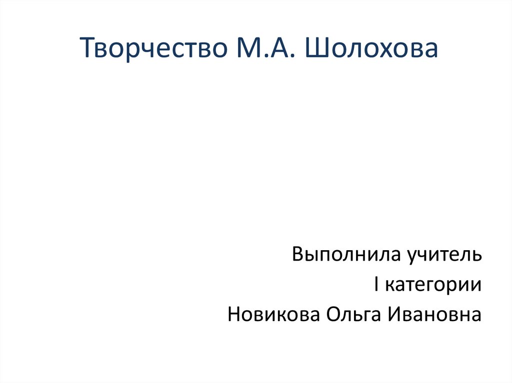 Творчество М.А. ШолоховаВыполнила учитель