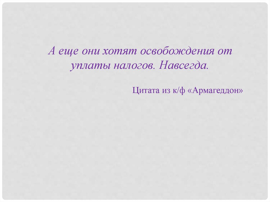 А еще они хотят освобождения отуплаты налогов. Навсегда.