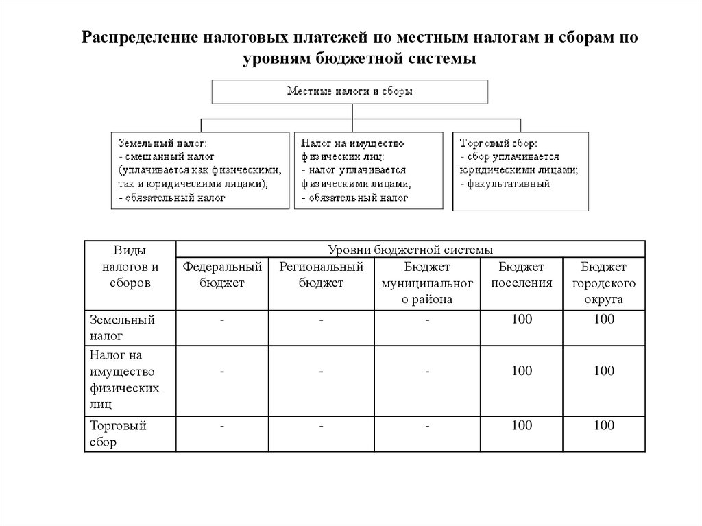 Распределение налоговых платежей по местным налогам и сборам поуровням бюджетной системы