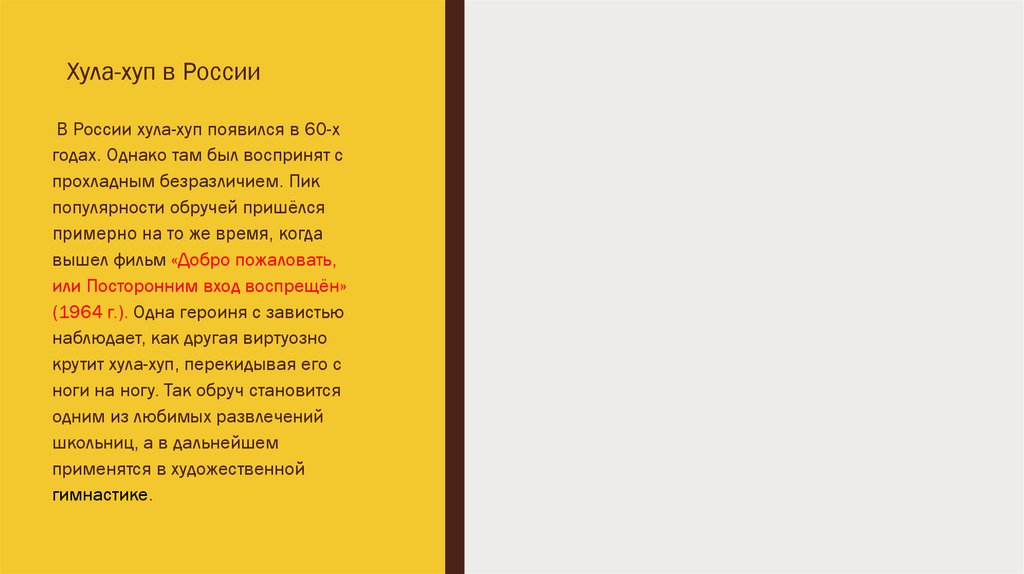 Хула-хуп в РоссииВ России хула-хуп появился в 60-х