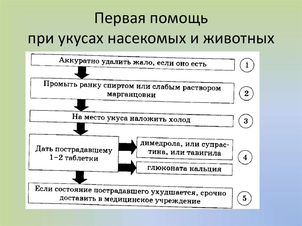 Первая помощьпри укусах насекомых и животных