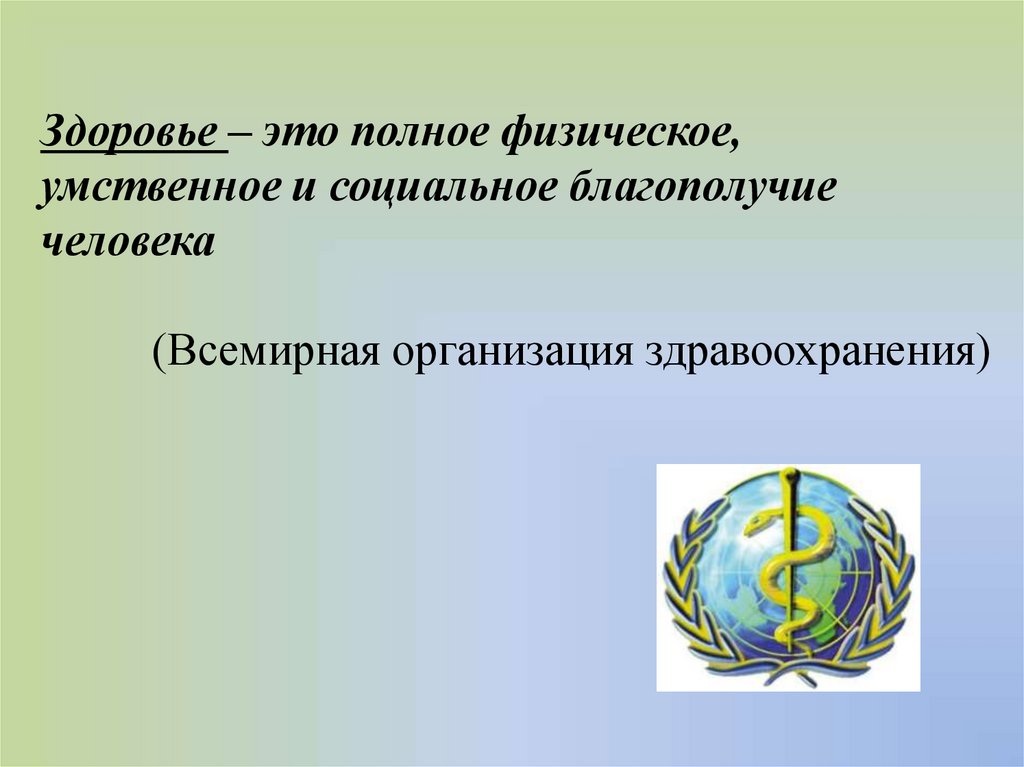 Здоровье – это полное физическое,умственное и социальное благополучие