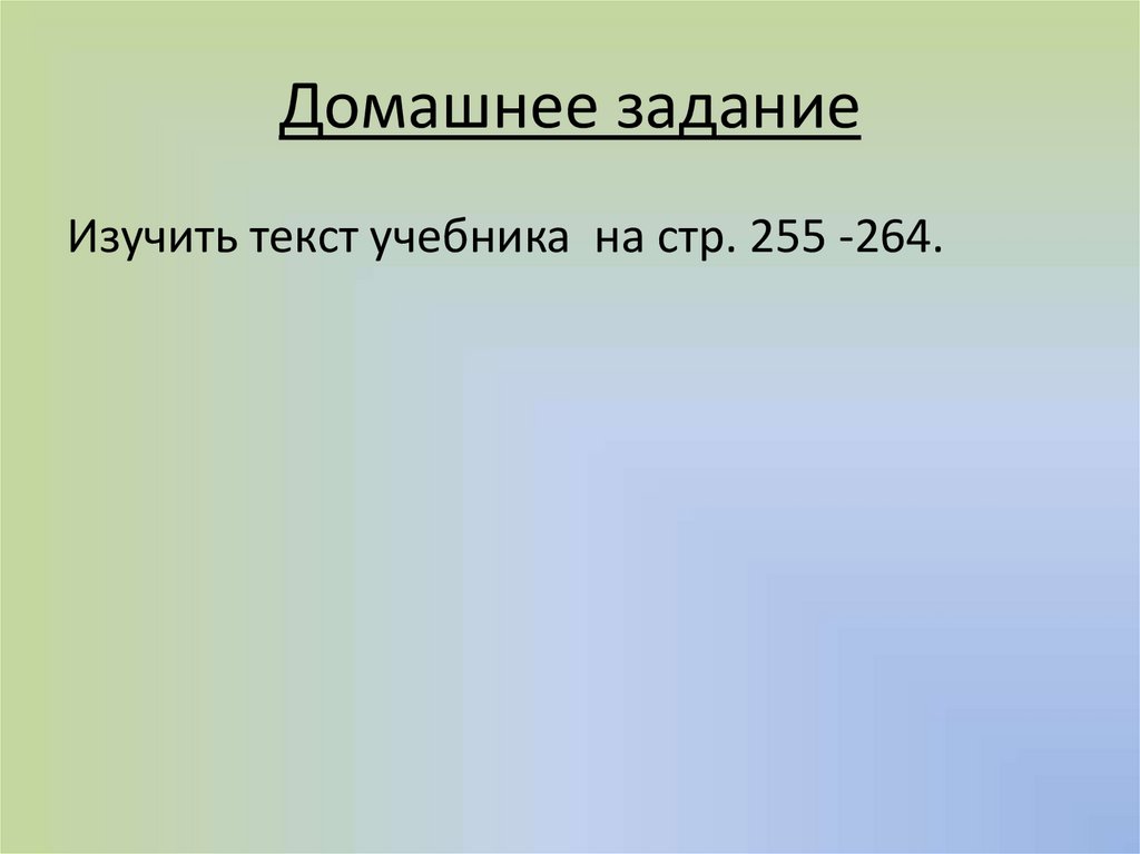 Домашнее заданиеИзучить текст учебника на стр. 255 -264.