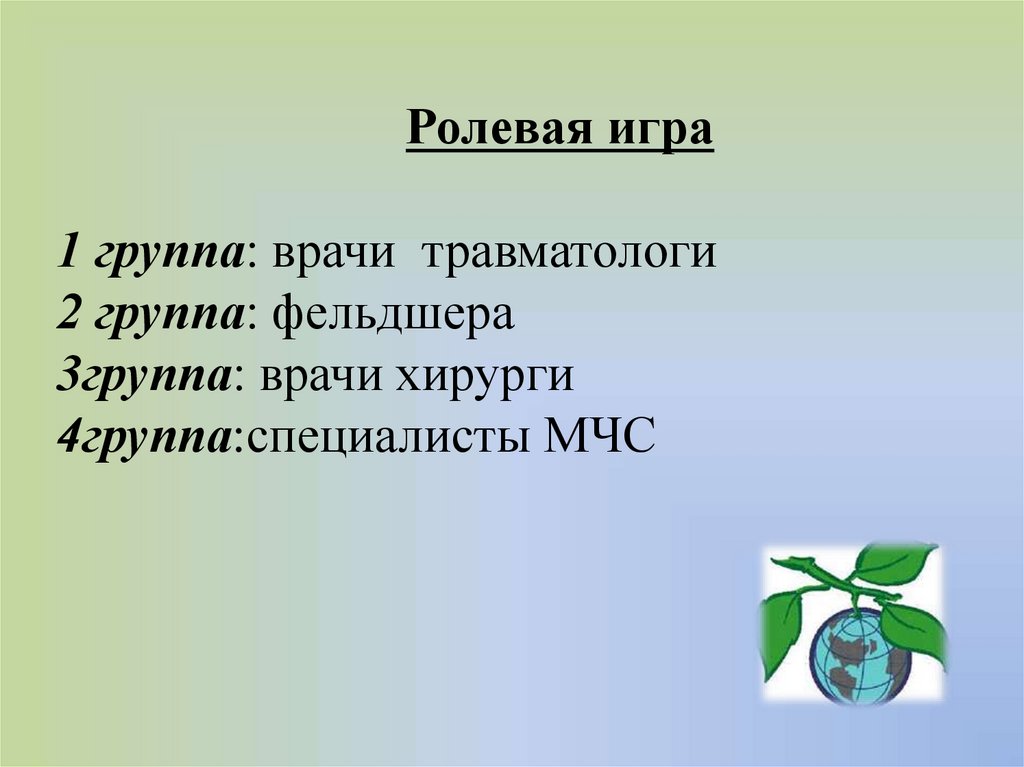 Ролевая игра1 группа: врачи травматологи