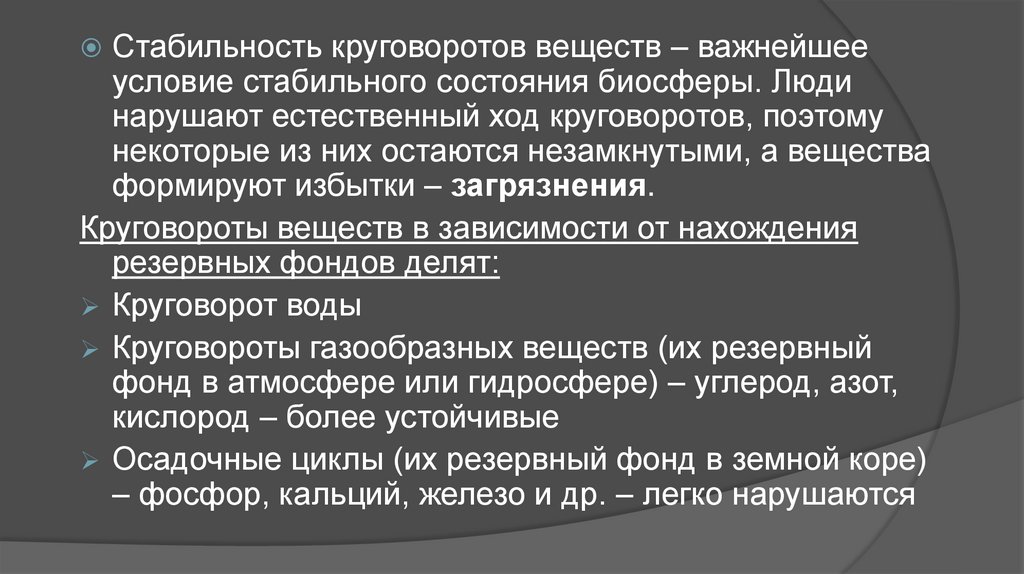 Стабильность круговоротов веществ – важнейшееусловие стабильного состояния биосферы. Люди