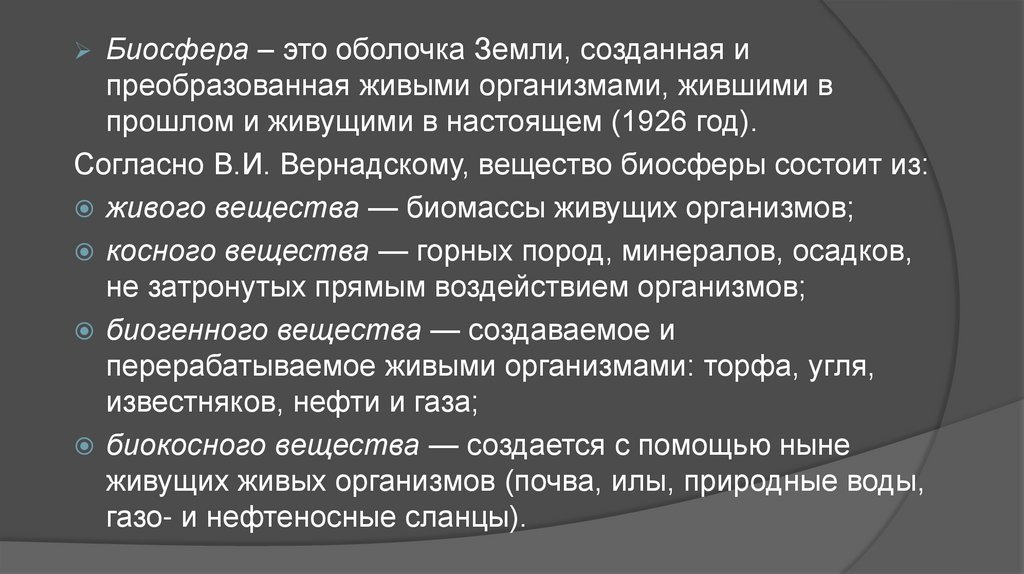 Биосфера – это оболочка Земли, созданная ипреобразованная живыми организмами, жившими в