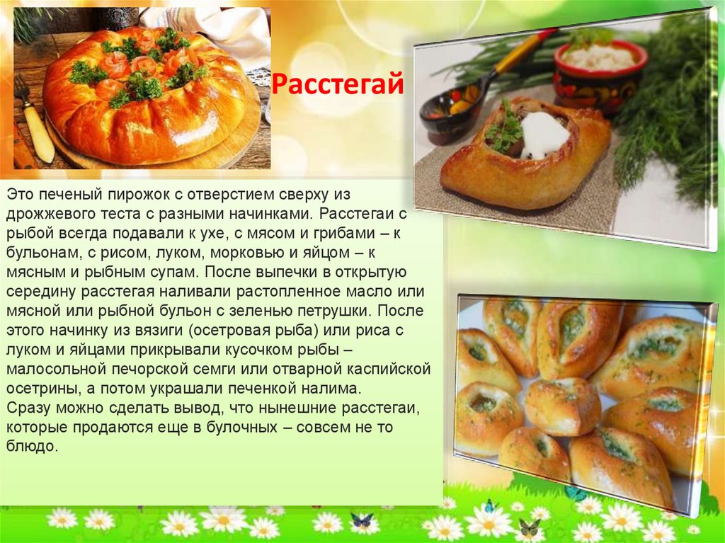 РасстегайЭто печеный пирожок с отверстием сверху из