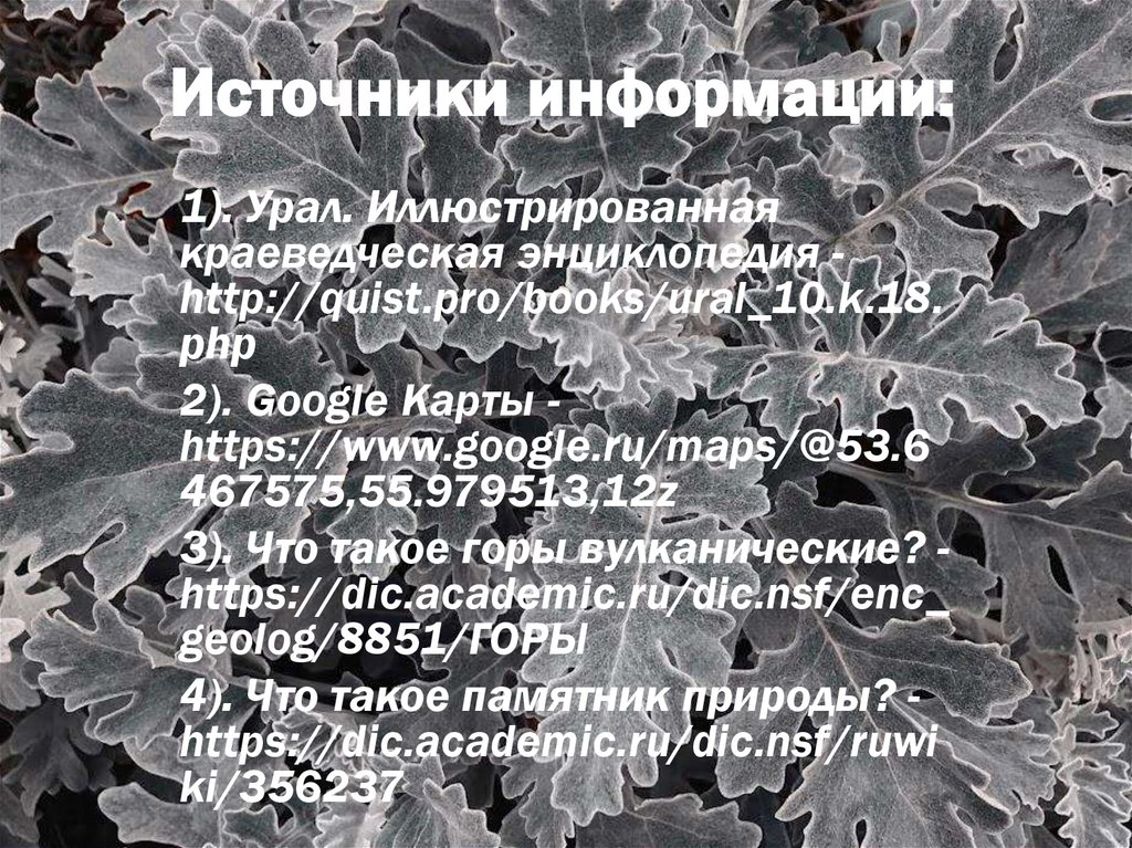 Источники информации:1). Урал. Иллюстрированная