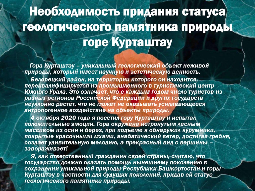 Курташтау в частности для будущих поколений, придав ей статус