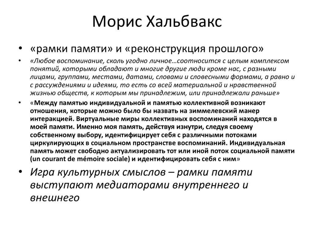 Морис Хальбвакс• «рамки памяти» и «реконструкция прошлого»