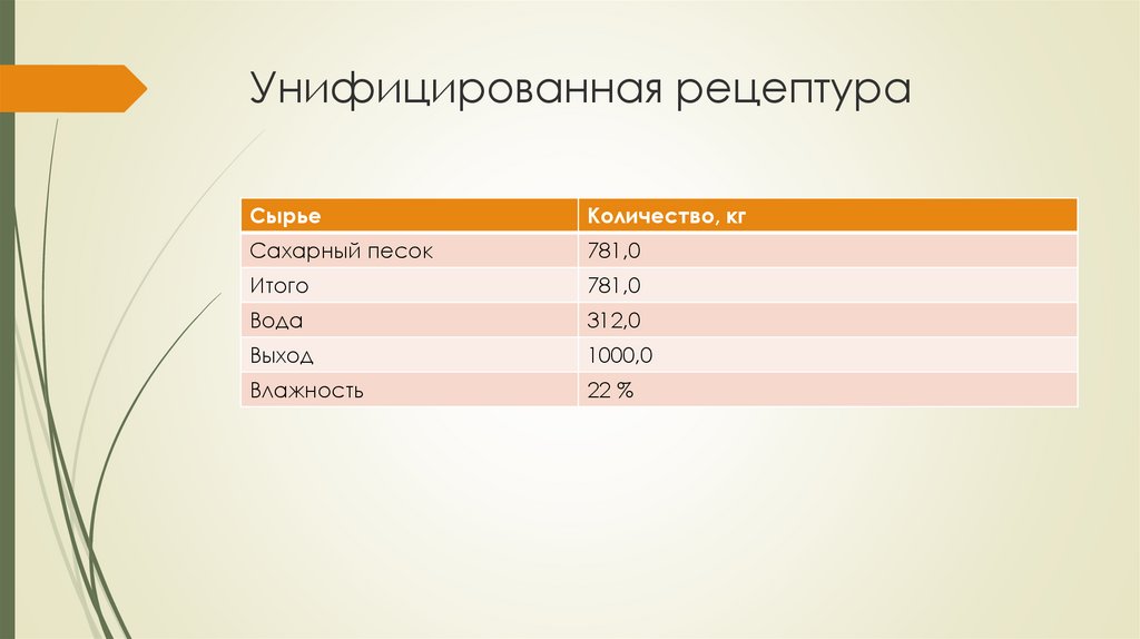 Унифицированная рецептураСырье