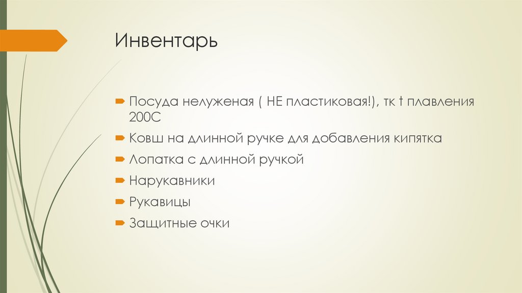 ИнвентарьПосуда нелуженая ( НЕ пластиковая!), тк t плавления