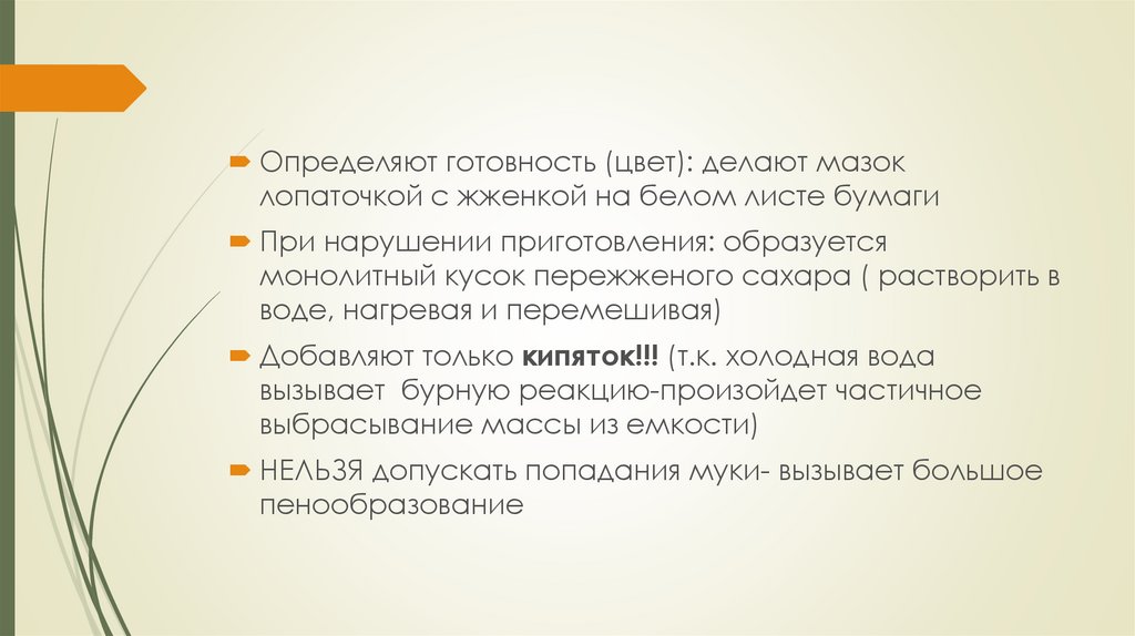 Определяют готовность (цвет): делают мазоклопаточкой с жженкой на белом листе бумаги