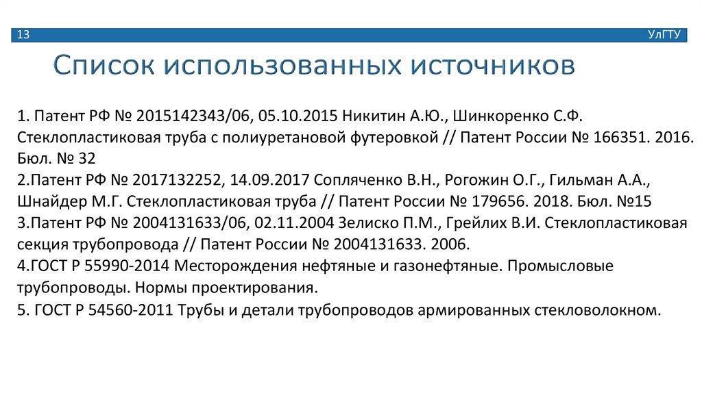 Шнайдер М.Г. Стеклопластиковая труба // Патент России № 179656. 2018. Бюл. №15