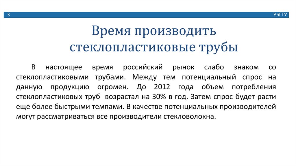 стеклопластиковых труб возрастал на 30% в год. Затем спрос будет расти