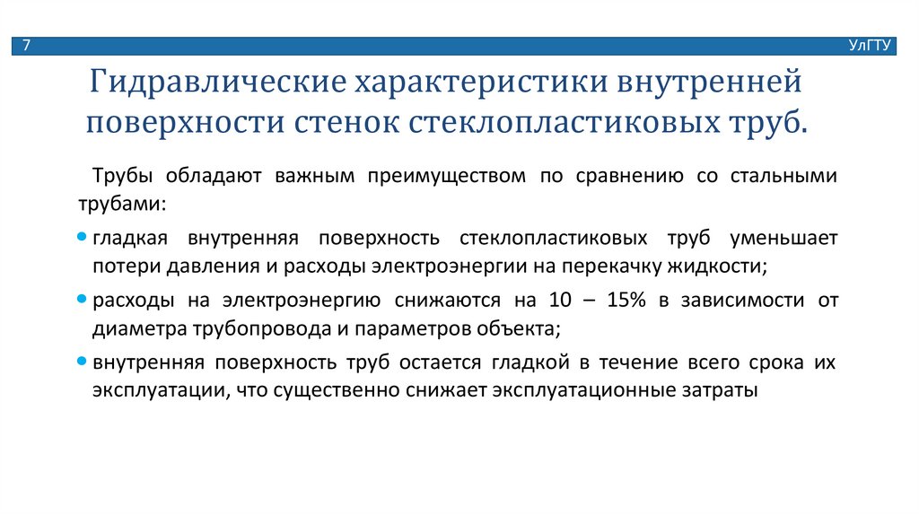 гладкая внутренняя поверхность стеклопластиковых труб уменьшает
