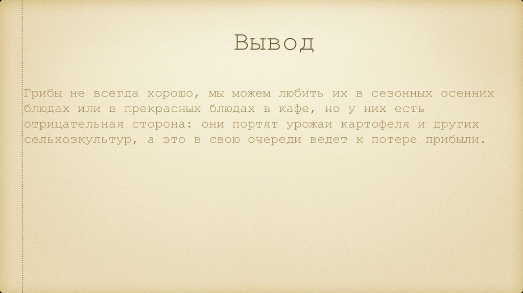 ВыводГрибы не всегда хорошо, мы можем любить их в сезонных осенних