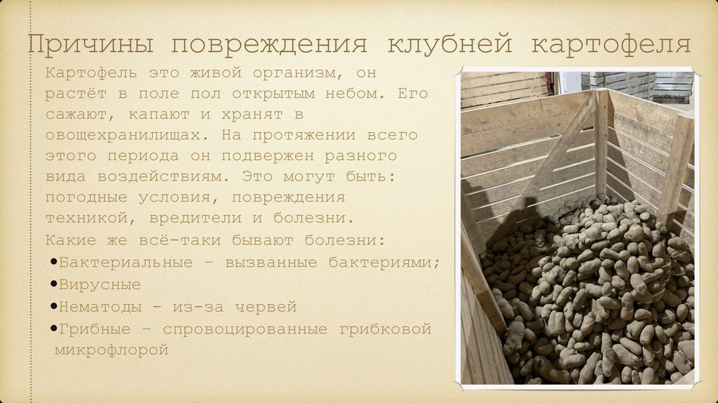 Причины повреждения клубней картофеляКартофель это живой организм, он