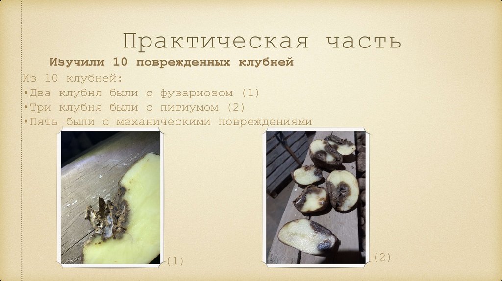Практическая частьИзучили 10 поврежденных клубней