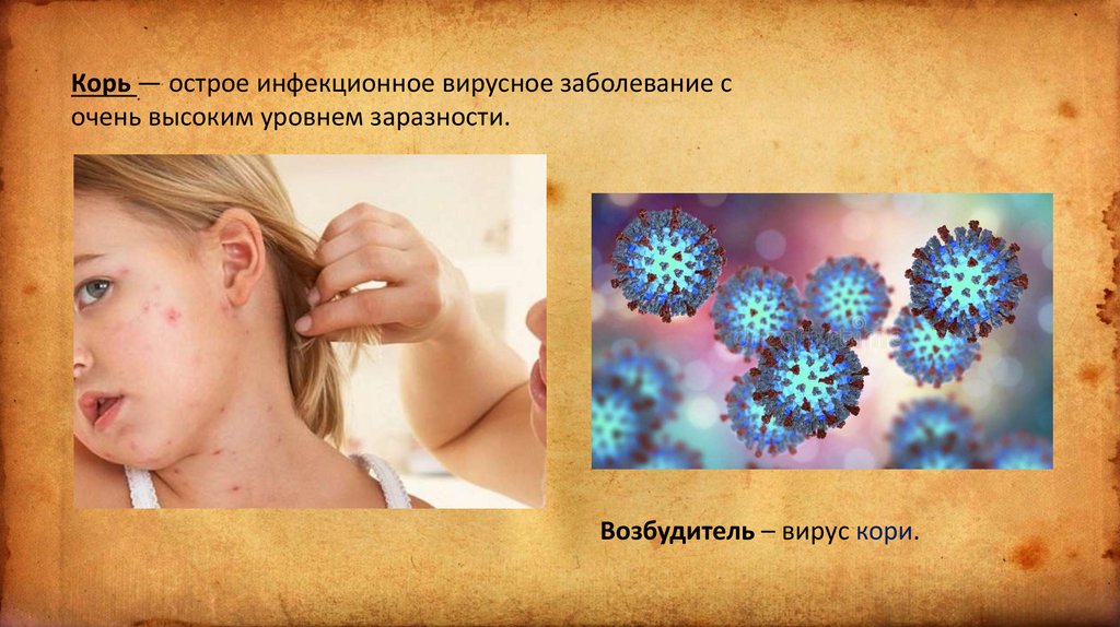 Корь — острое инфекционное вирусное заболевание сочень высоким уровнем заразности.