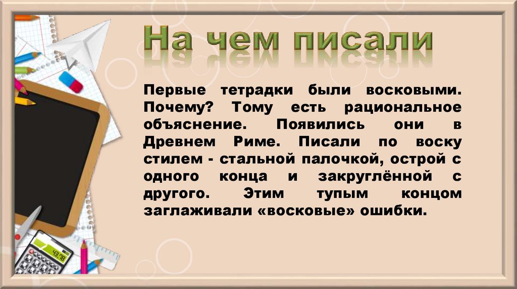 Первые тетрадки были восковыми.Почему? Тому есть рациональное