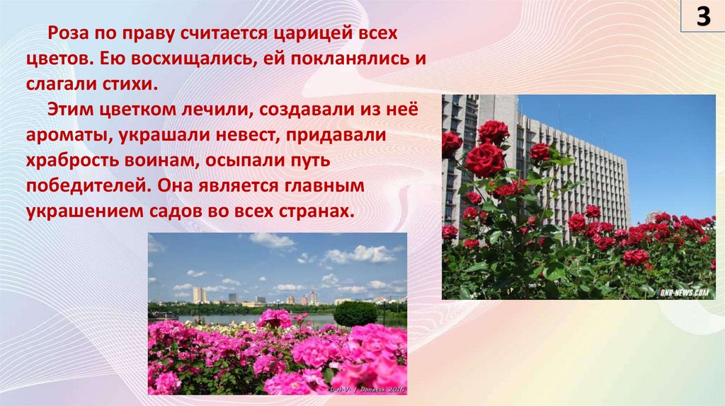 Роза по праву считается царицей всехцветов. Ею восхищались, ей покланялись и