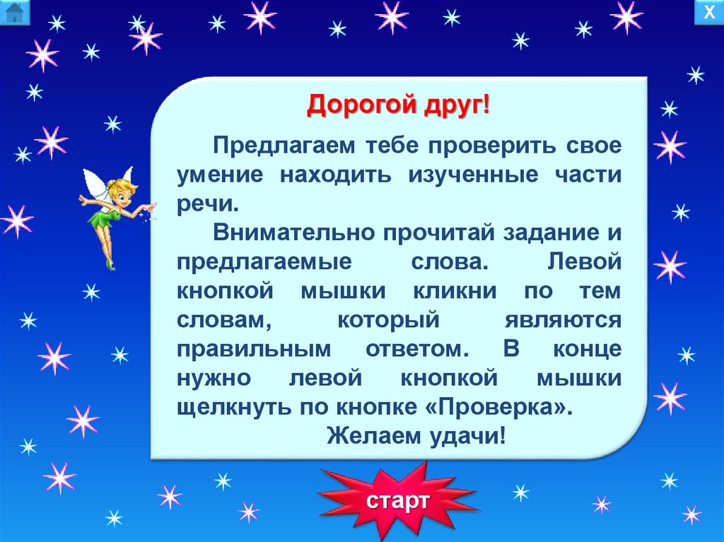 Тренажер для самопроверки. Части речи