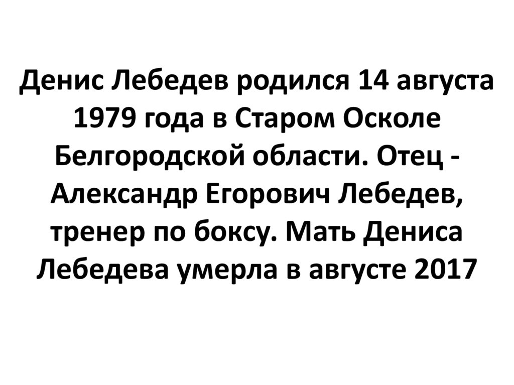 Денис Лебедев родился 14 августа1979 года в Старом Осколе