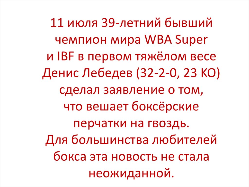 11 июля 39-летний бывшийчемпион мира WBA Super
