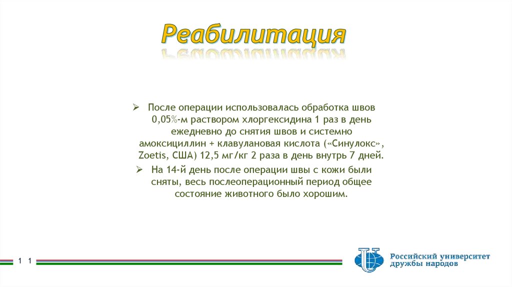 Zoetis, США) 12,5 мг/кг 2 раза в день внутрь 7 дней.