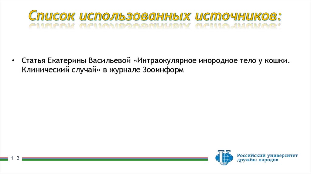 • Статья Екатерины Васильевой «Интраокулярное инородное тело у кошки.Клинический случай» в журнале Зооинформ