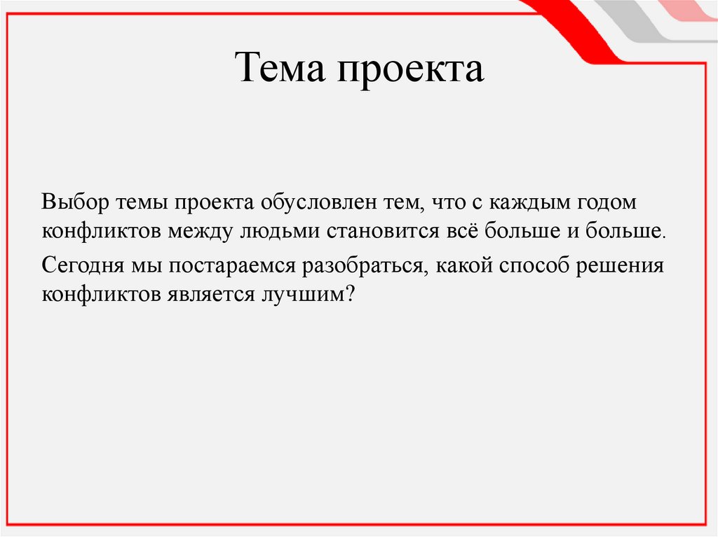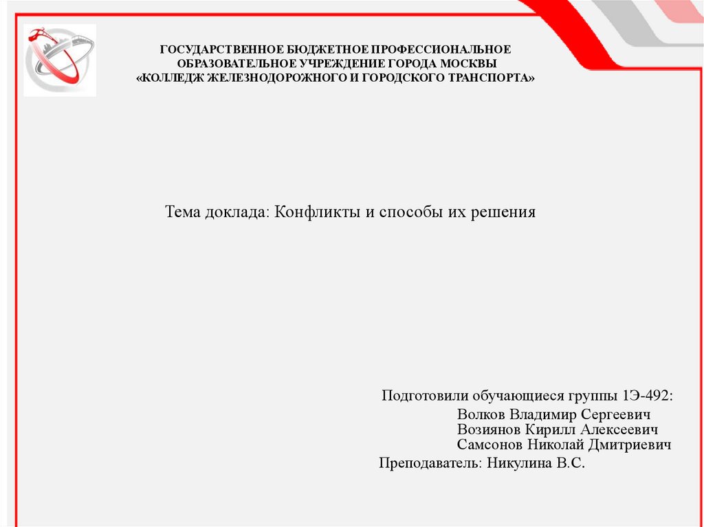 Тема доклада: Конфликты и способы их решения