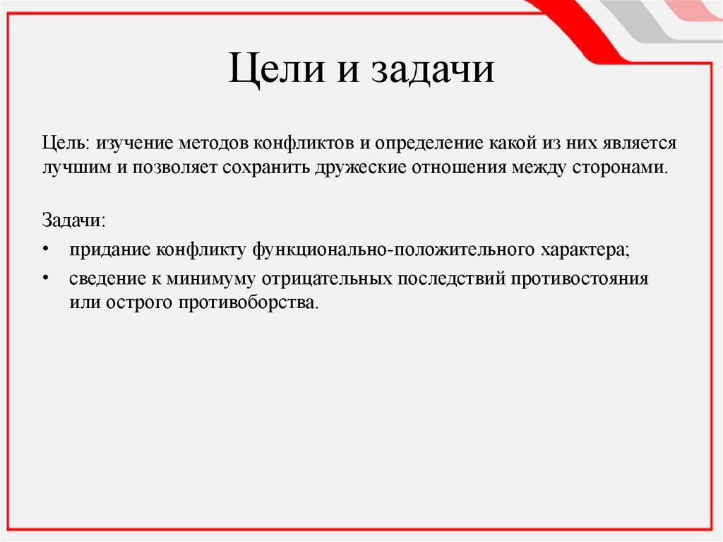 Цели и задачиЦель: изучение методов конфликтов и определение какой из них является
