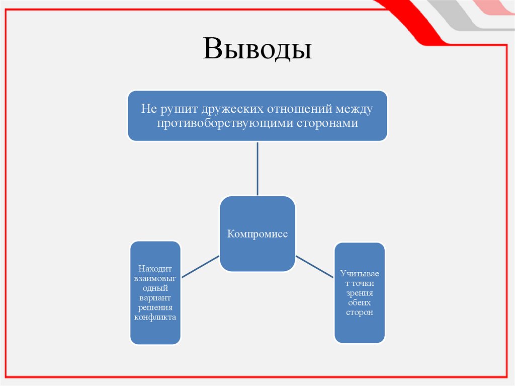 Диаграмма решения конфликтовСпособы решения конфликтов