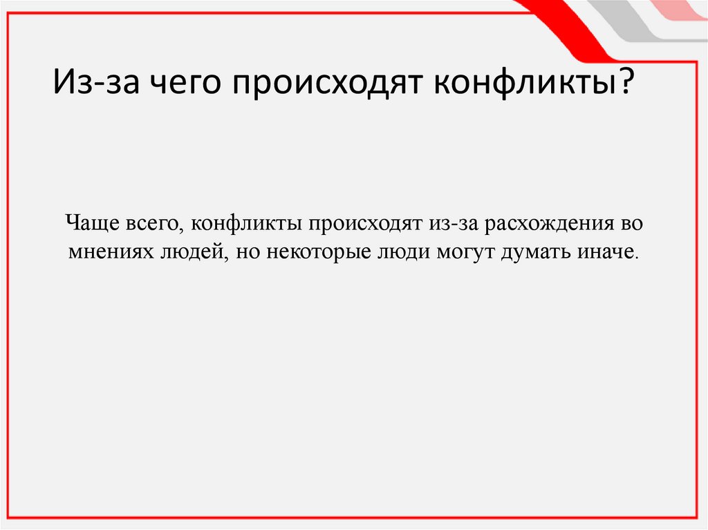 Из-за чего происходят конфликты?Чаще всего, конфликты происходят из-за расхождения во