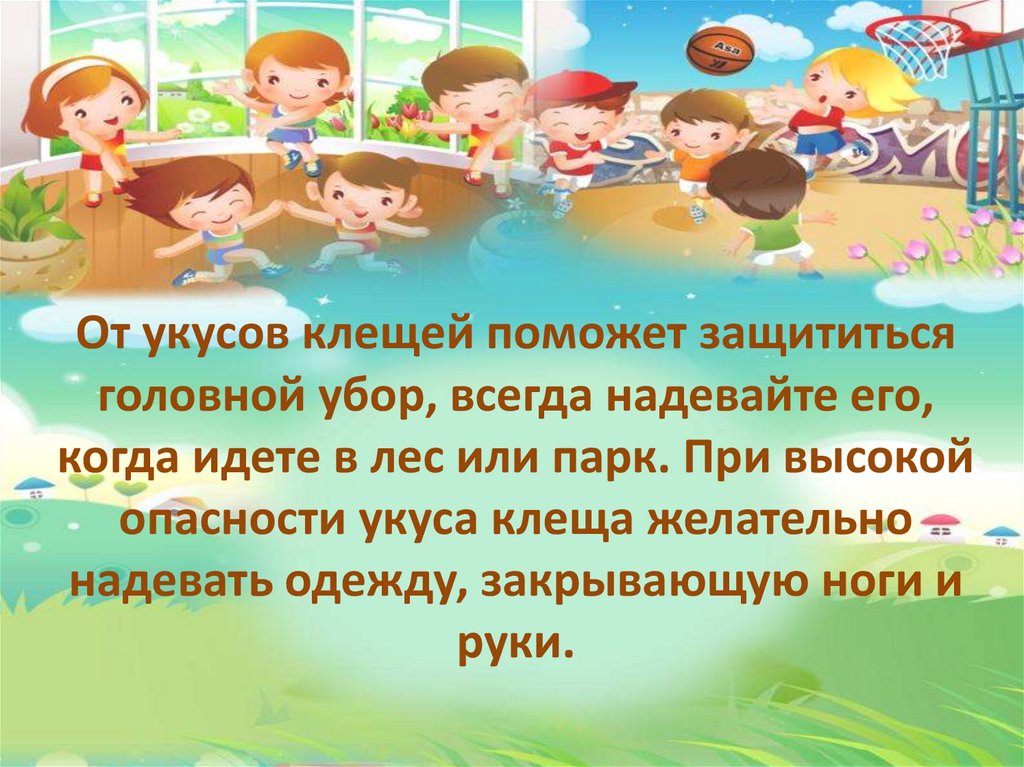 От укусов клещей поможет защититьсяголовной убор, всегда надевайте его,