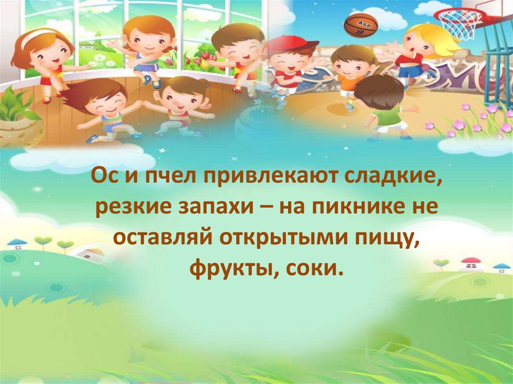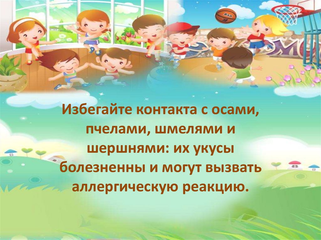 Избегайте контакта с осами,пчелами, шмелями и
