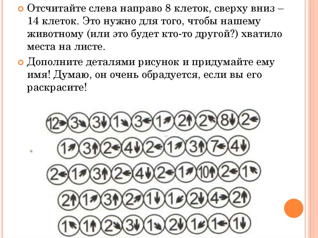 Отсчитайте слева направо 8 клеток, сверху вниз –14 клеток. Это нужно для того, чтобы нашему