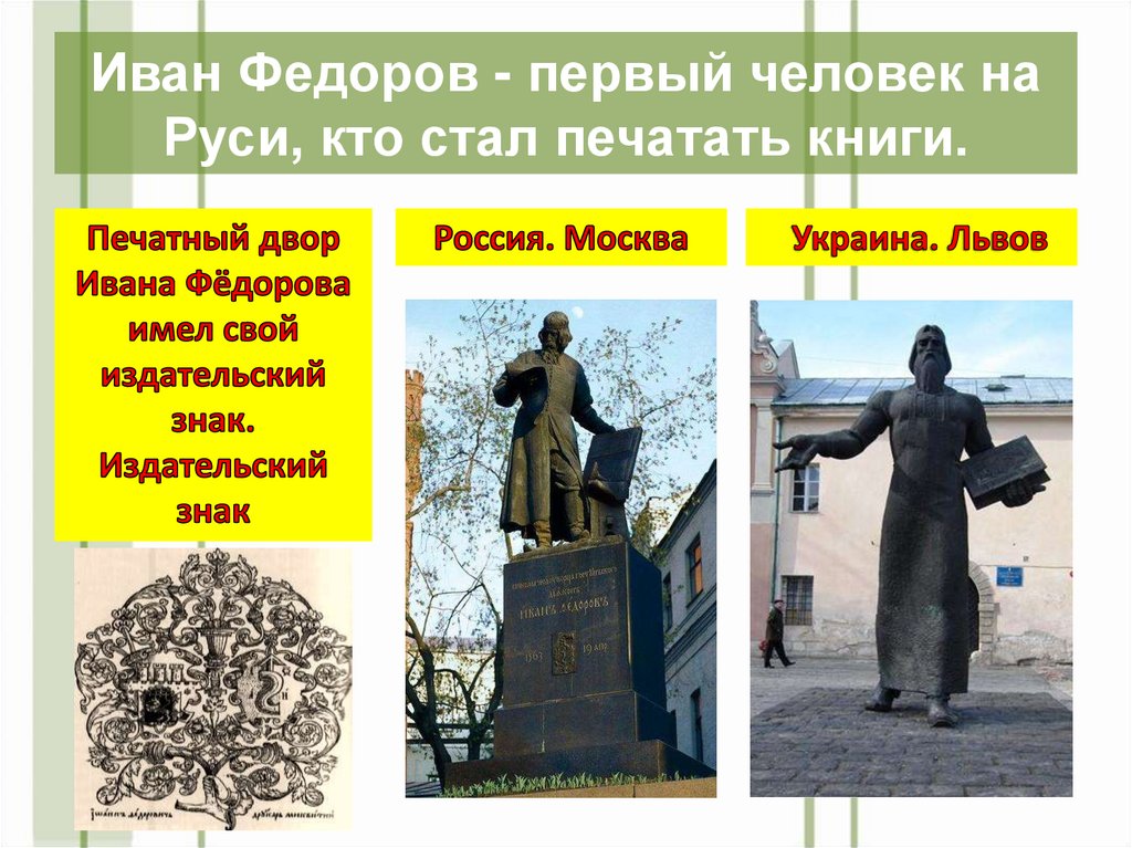 Иван Федоров - первый человек наРуси, кто стал печатать книги.