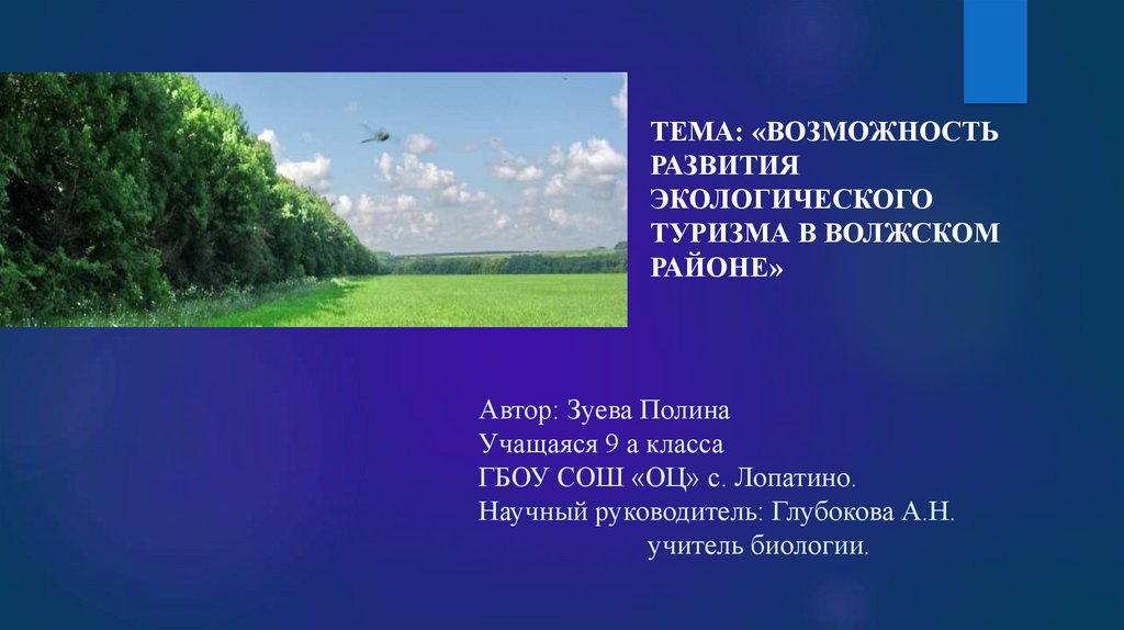 Возможность развития экологического туризма в Волжском районе