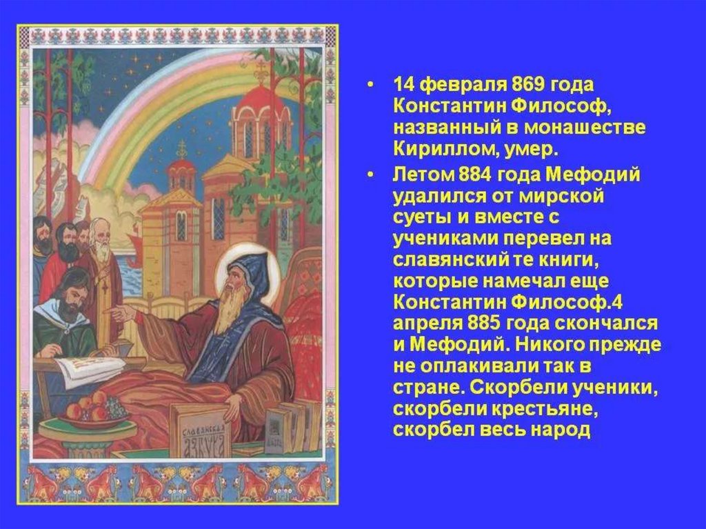 вот, моравский князь просил, чтобы в его