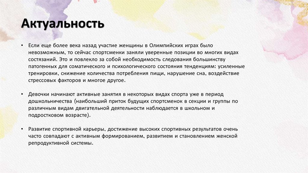 • Проблемы женского спорта требуют разностороннего и углубленного изучения.