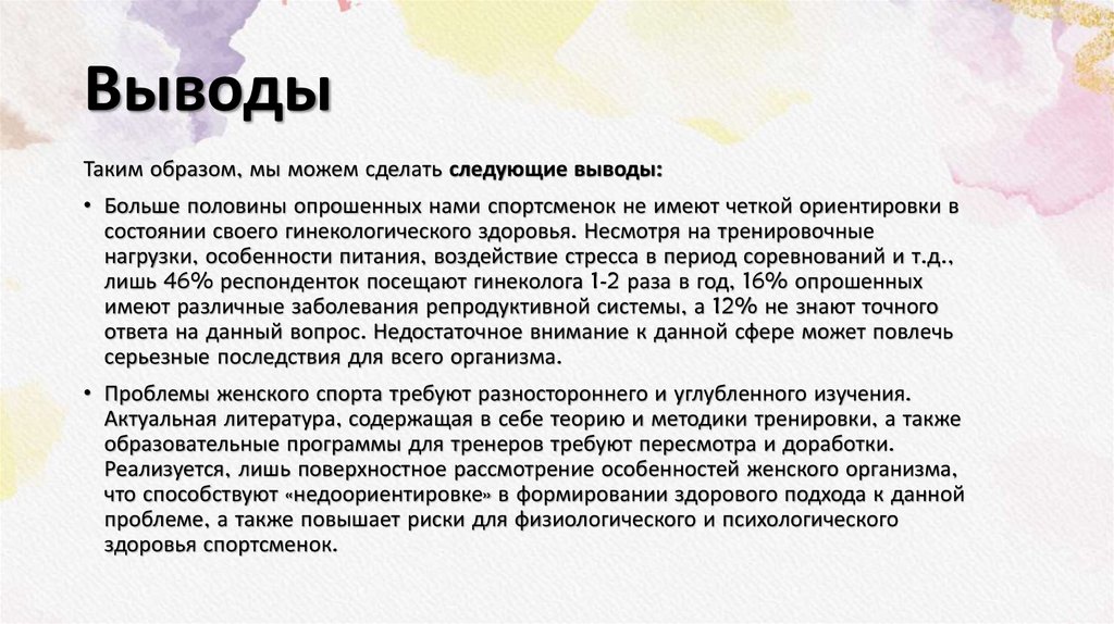 состоянии своего гинекологического здоровья. Несмотря на тренировочные