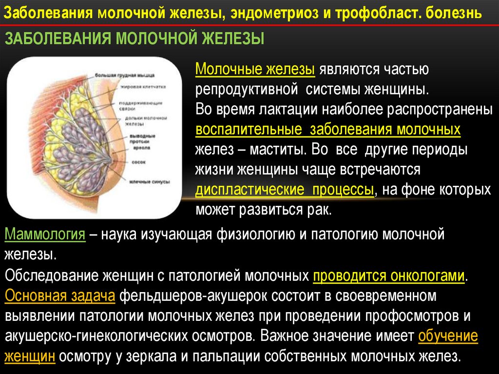Заболевания молочной железы, эндометриоз и трофобласт. болезньЗАБОЛЕВАНИЯ МОЛОЧНОЙ ЖЕЛЕЗЫ